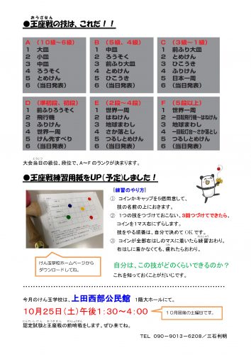 通信の中でも触れられていますが、11月はけん玉学校王座戦。