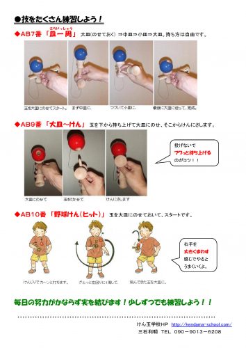 レベル別に技が変わりますのでどなたでも優勝の可能性があります。そして、なんとけん玉学校杯オリジナルルール、「宿題を提出するとアドバンテージポイントが1ポイントプラス」。参加される方はぜひ下記の宿題を印刷して提出してください。この1ポイントが大きいのです。