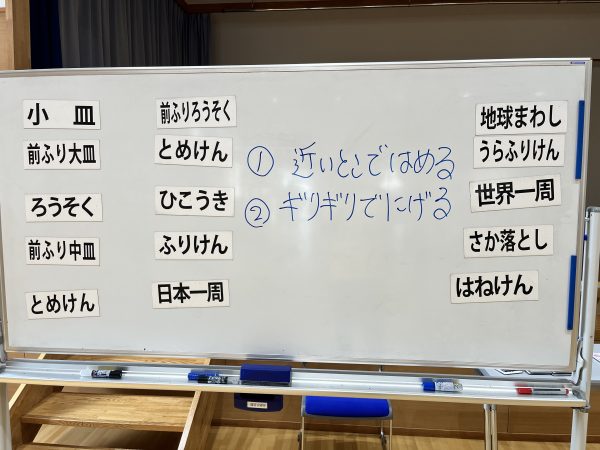 レベル別に前にでて、みんなに見られながらけん玉学校杯の技に挑戦します。