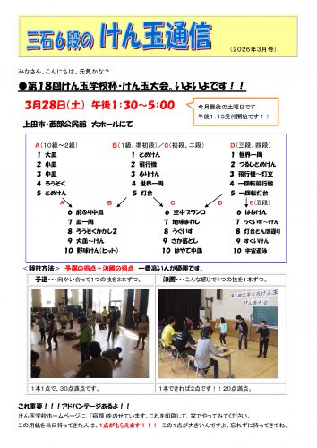 三石6段のけん玉通信3月号を会員のみなさまにはメールで送りました。